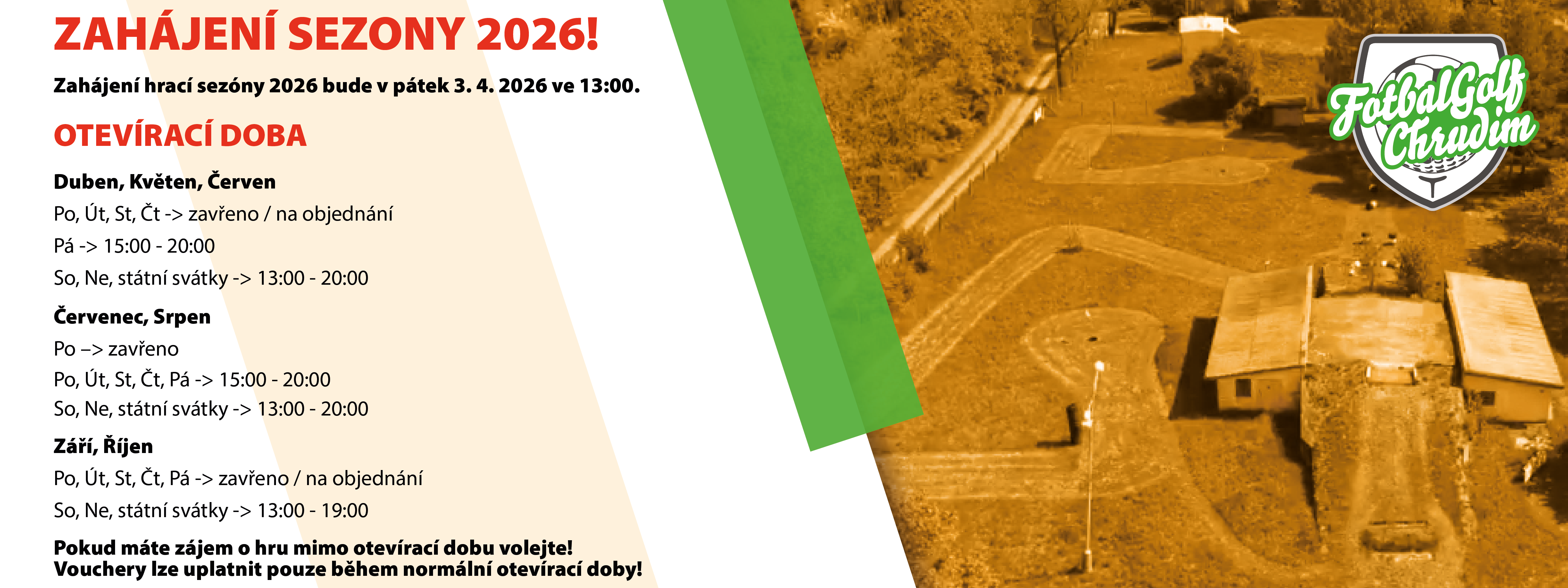 Pro návštěvníky FotbalGolfu Chrudim je připraveno hřiště, které má 16 jamek z přírodních, ale i umělých překážek.